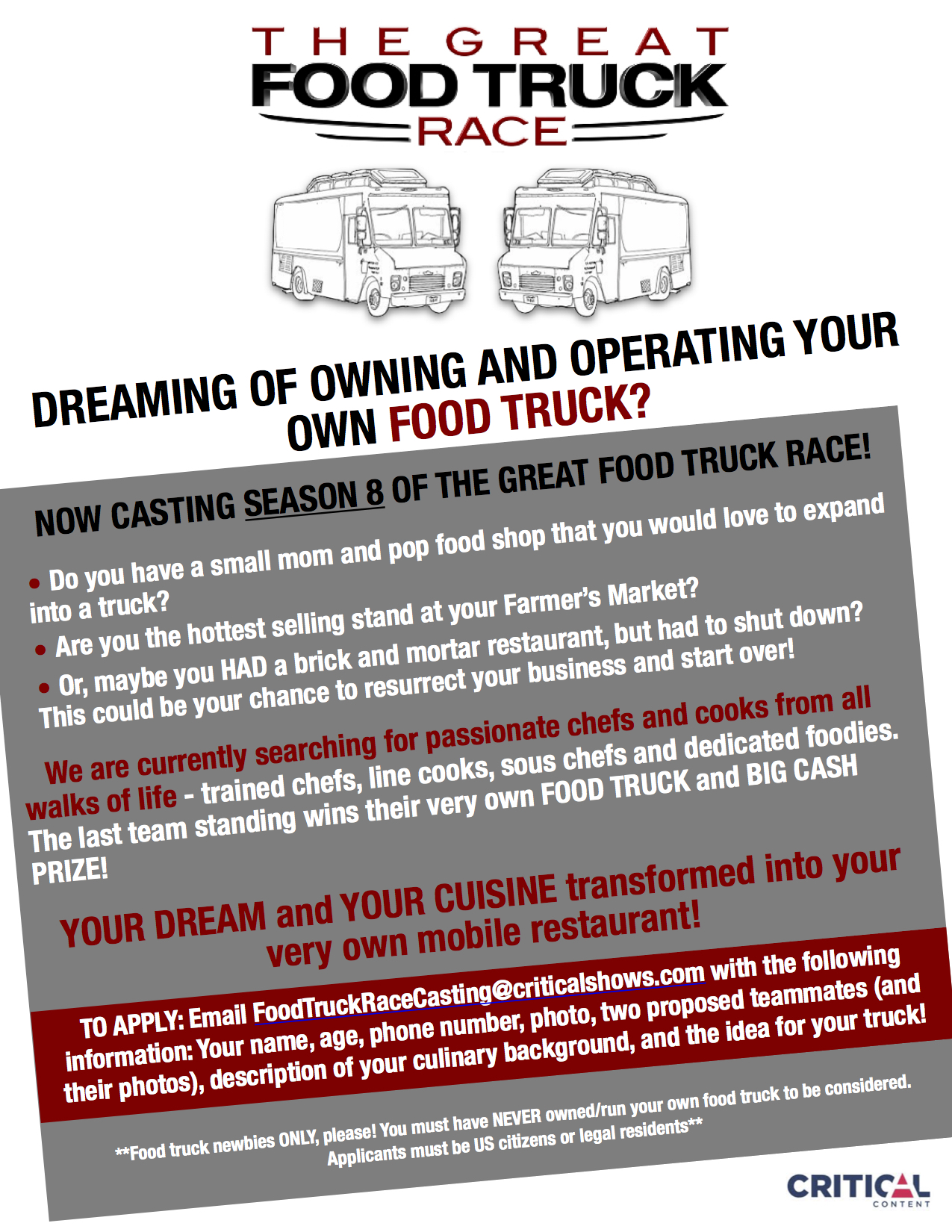 Great Food Truck Race Casting 2025. During the sixth season of the great food truck race,” the winning food truck claimed a phenomenal victory — or, in its words, a pho nomenal victory. Acclaimed chef and host of the great food truck race, tyler florence, is once again giving you the opportunity to start your own food truck!